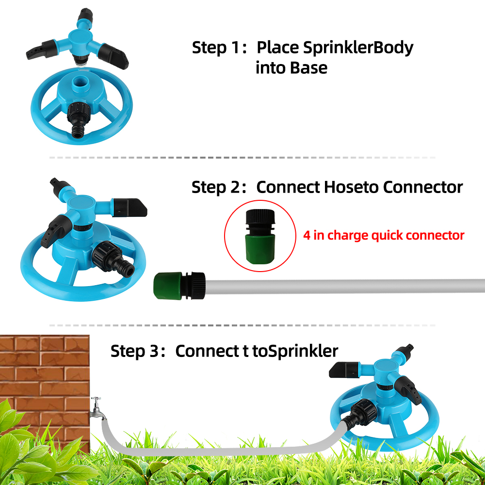with 360 degree rotation feature and the three nozzle spray ,the lawn sprikler can take good use of all the water to water your garden well without wasting water resources.
