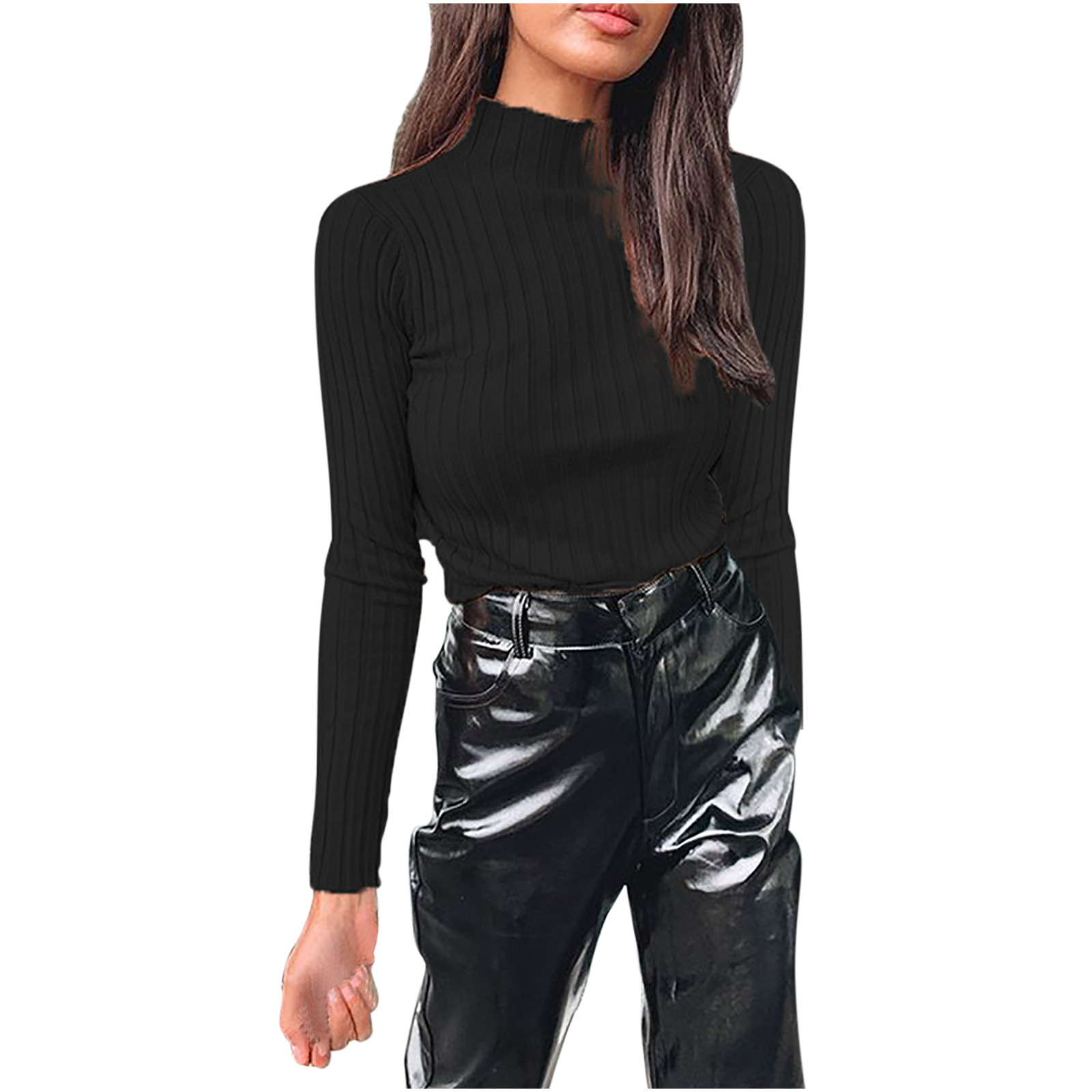 Women's Fashion Solid Long Sleeve Slim Turtleneck Pullover Sweater Blouse
