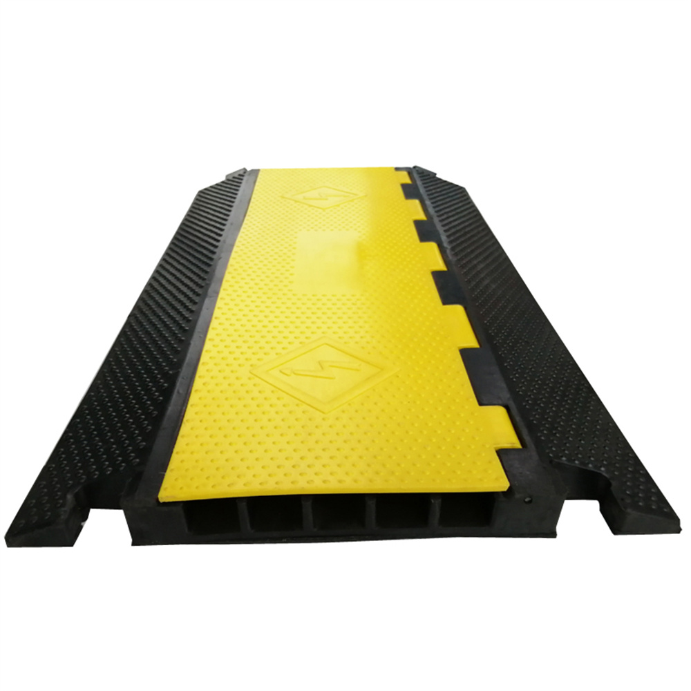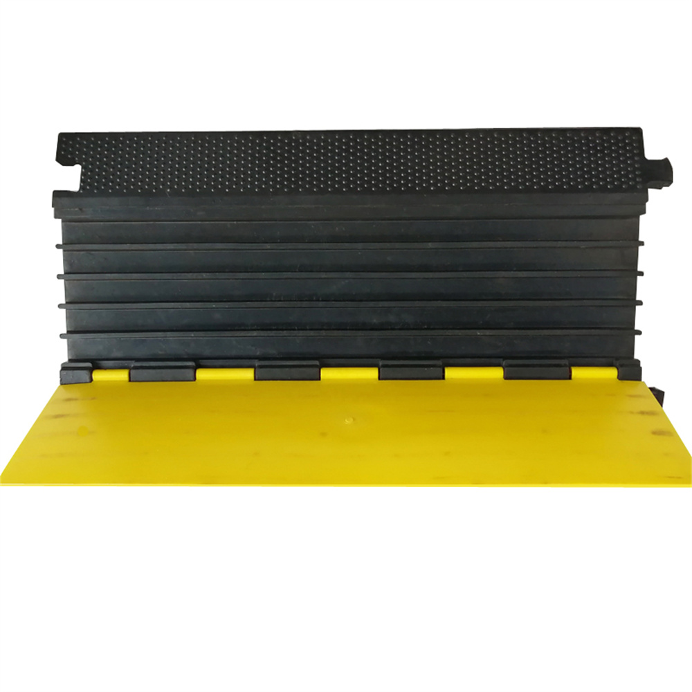 It is usually being placing at the passage of the factory, parking lot, exhibition centre, performing-arts centre, stadium or concerts, especially those places which cars often pass by. This cable protector can easily hide those cables and prevent them being exposed outside, meanwhile, it protects cables from being crashed or pressed. It's incredible insulativity can withstand 2500V voltage. The bright yellow safety lid with warning symbols can easily attract people's attention.