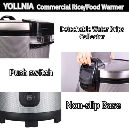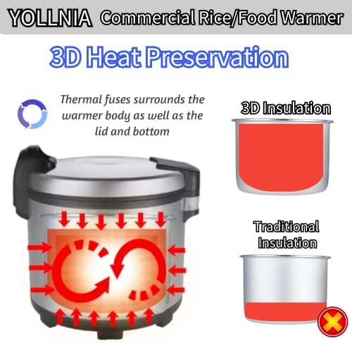 The YOLLNIA Rice Warmer keeps top-quality, delicious rice warm that is already cooked, and warm until it’s served. The benefit of a stand-alone commercial rice warmer is that it frees up your rice cooker to enable further production of rice for lunch times. In addition to rice, this versatile unit can be used to keep soup, cheese, oatmeal, macaroni, grits, and other foods warm, making it an excellent addition to restaurants, takeaways, cafeterias, and other places or events in great demand. (This is a commercial rice warmer, not a cooker.)