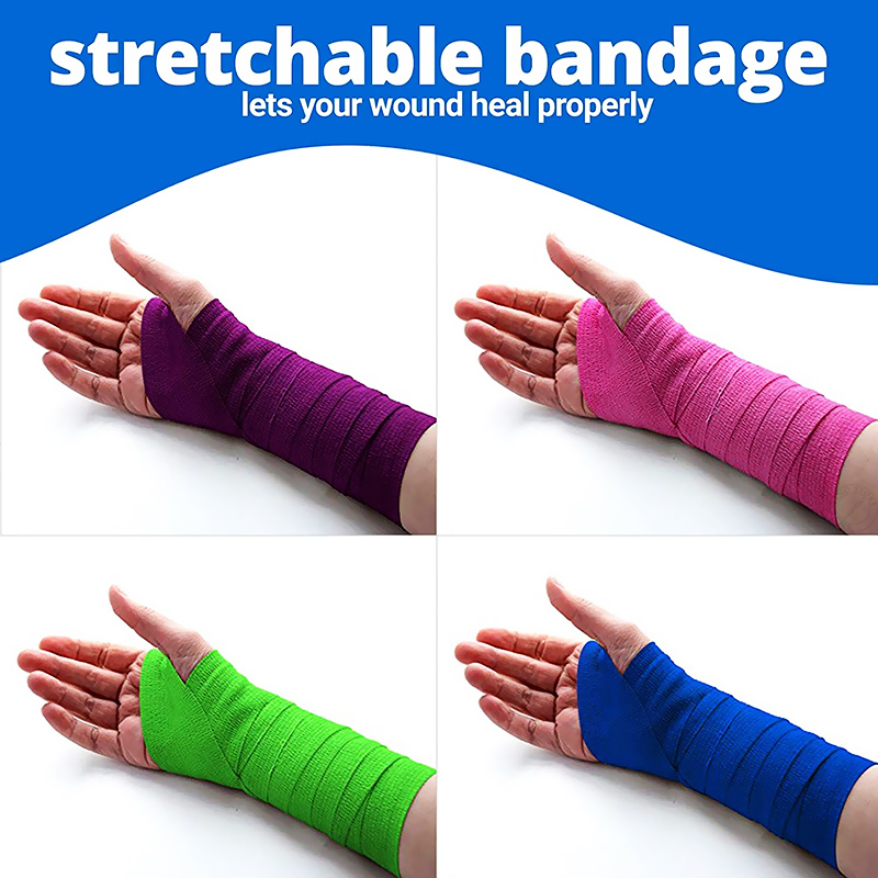 Self adherent wrap are light in weight and breathable. Cohesive bandages are less irritating during exercise or sports games and activities. Since sports wrap are flexible and suitable for any form, the automatic grip bandage is suitable for wrapping fingers and toes, ankles, wrists, elbows, knees, etc.