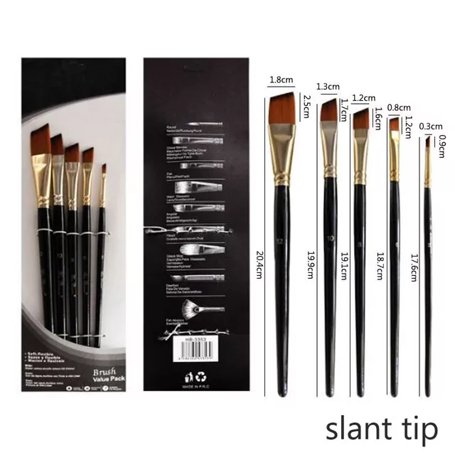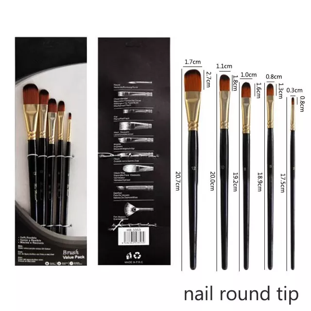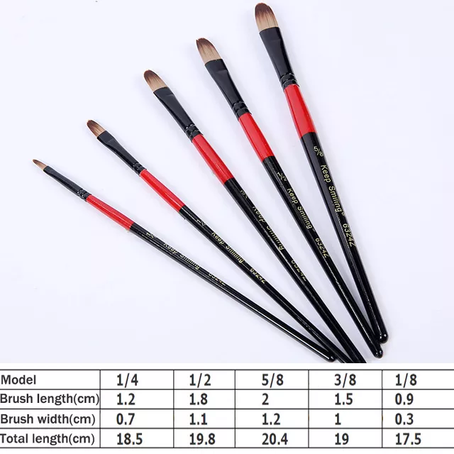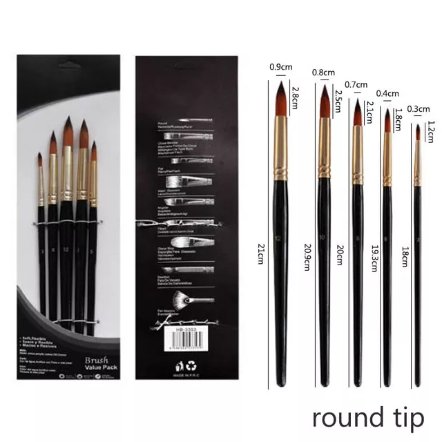 This acrylic artist paint brush set includes 5 different sizes which will meet most of your creative painting needs, from thick strokes to fine detailing.