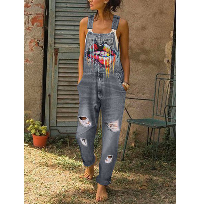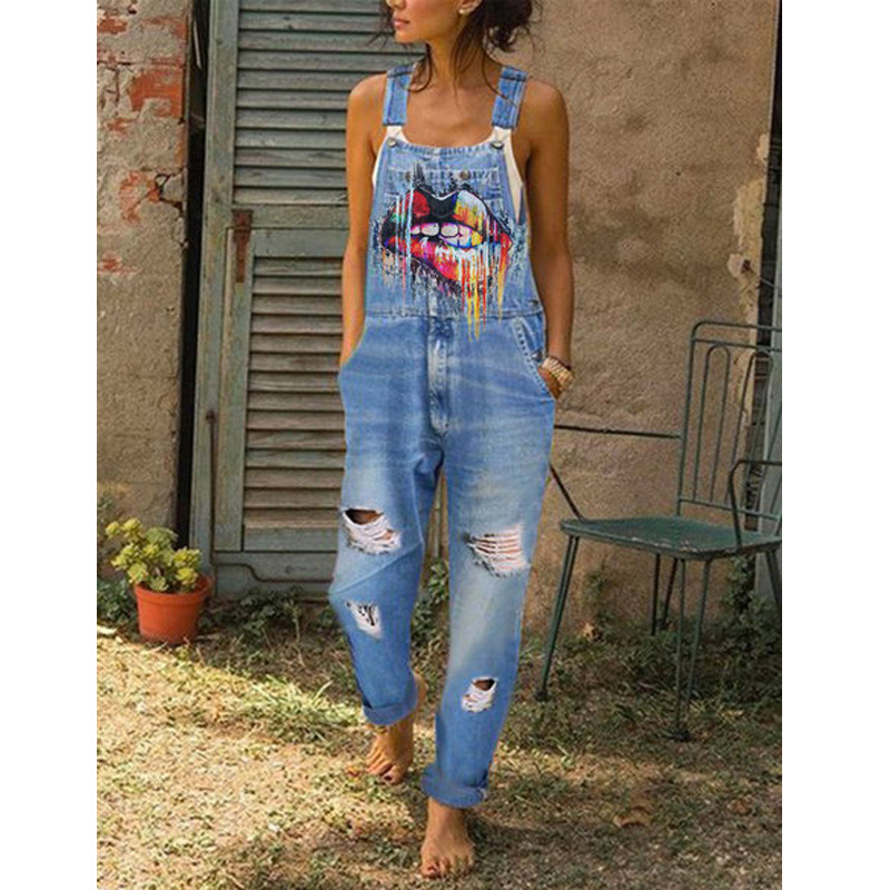 5XL Jeans Women Overalls Tongue Print Streetwear Denim Pants Loose Trouser Female Vintage Jumpsuit Pantalones De Mujer