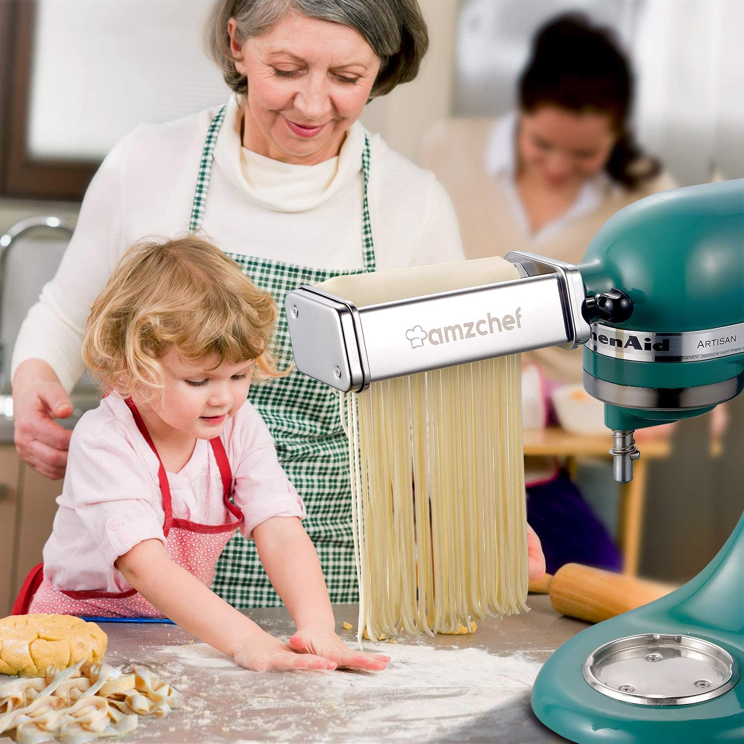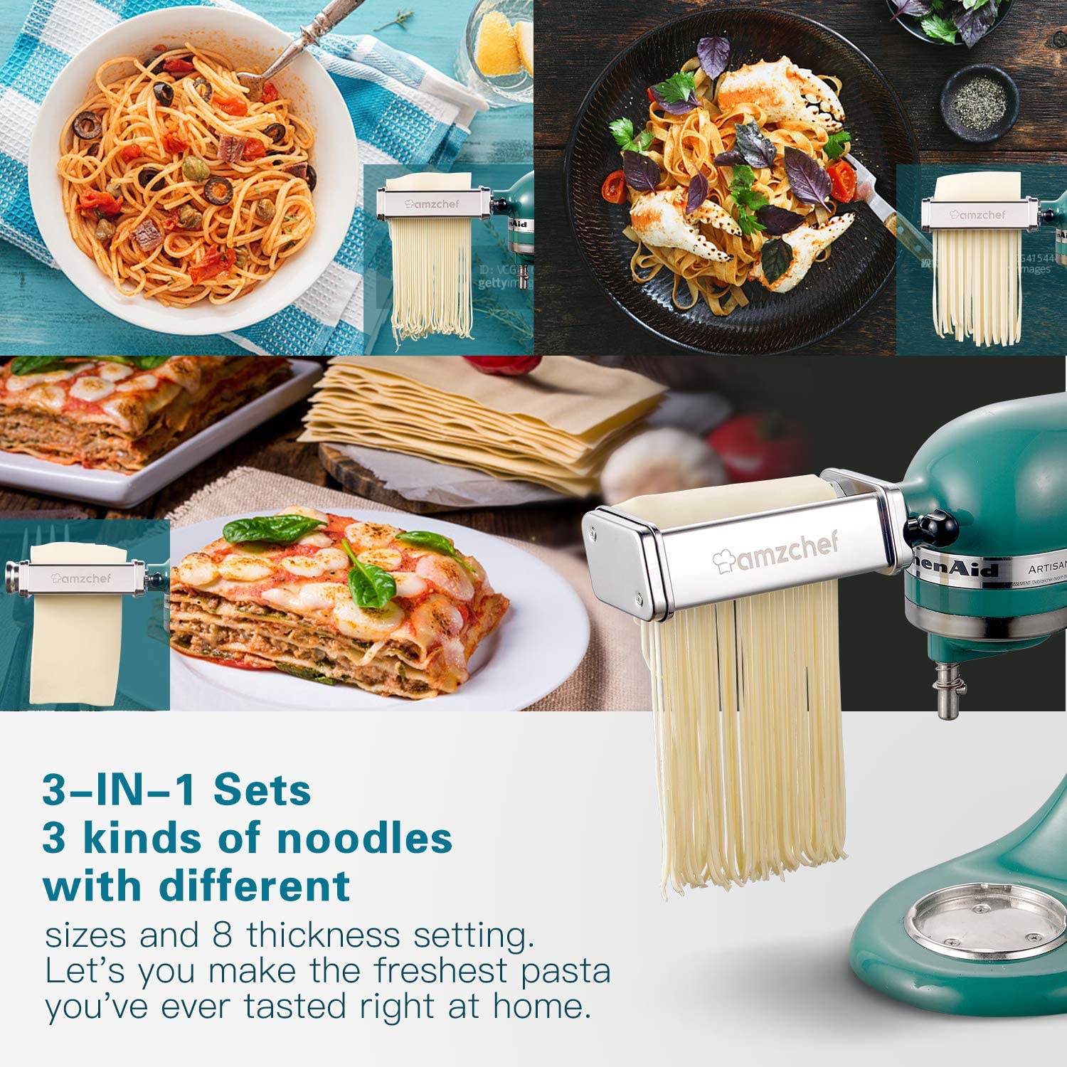 This AMZCHEF pasta roller & cutter attachments 3-in-1 set fits ALL KitchenAid Stand Mixer perfectly. It not only ensures the freshness of pasta, but also makes it's very convenient to make homemade pasta. Nothing beats home-cooked meals,this pasta roller set of stand mixer attachments will help make those happen!