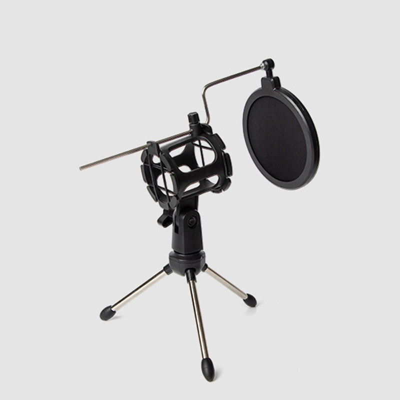 Adjustable Microphone Stand Desktop Tripod for Computer Video Recording with Mic Windscreen Filter Cover