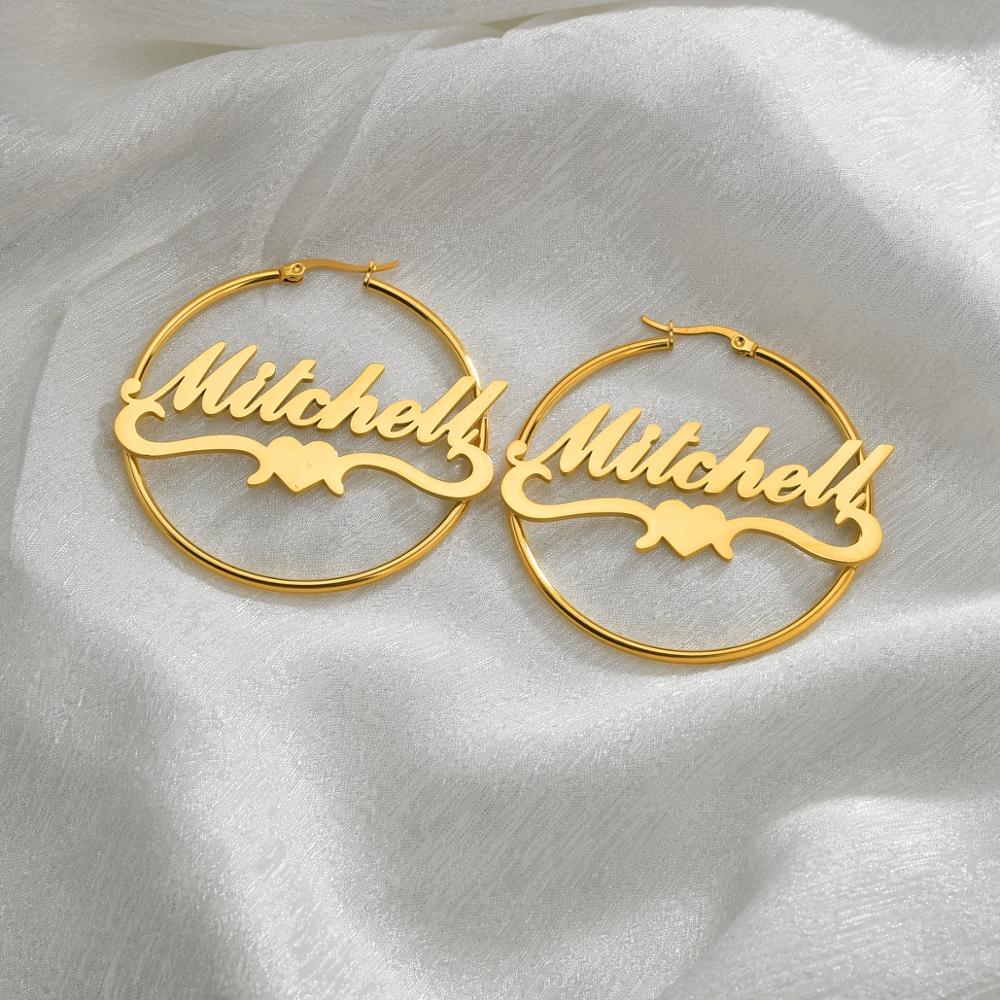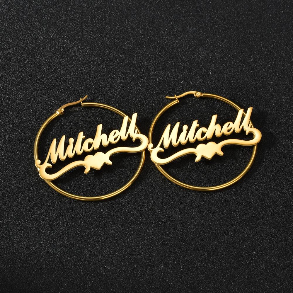 Name:Atoztide Personalized Name High Quality Stainless Steel Letter Earrings Custom Name Cricle Earrings For Women Party Jewelry