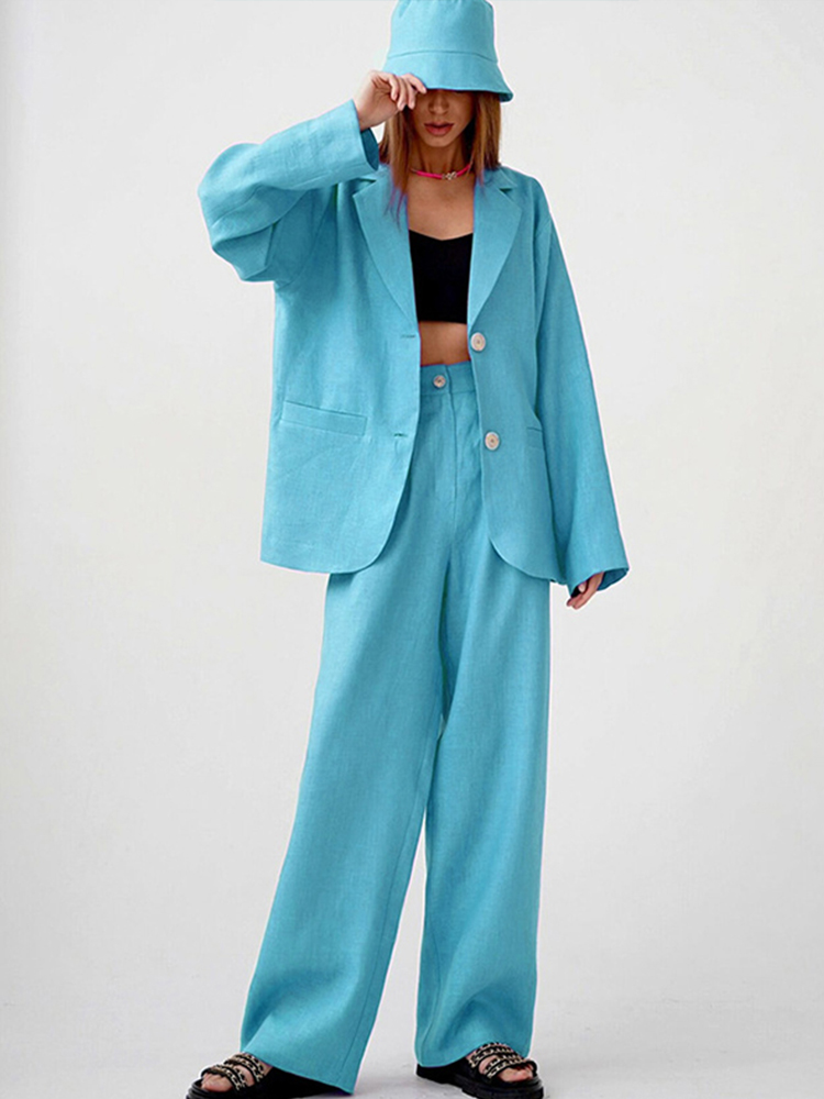 Autumn Green Blazer Pants 2 Pieces Sets Women Casual Long Sleeve Jacket Suits Loose High Waist Wide Leg Trousers Outfits