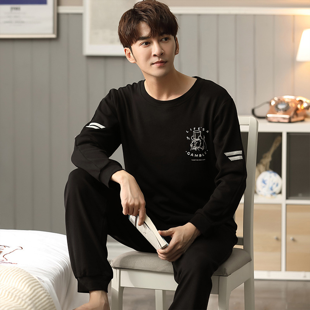 Autumn Winter Men Cotton Pajamas Set Fashion Casual Striped Patchwork Sleepwear Suit Home Clothes Loose Home Wear Plus Size 4XL