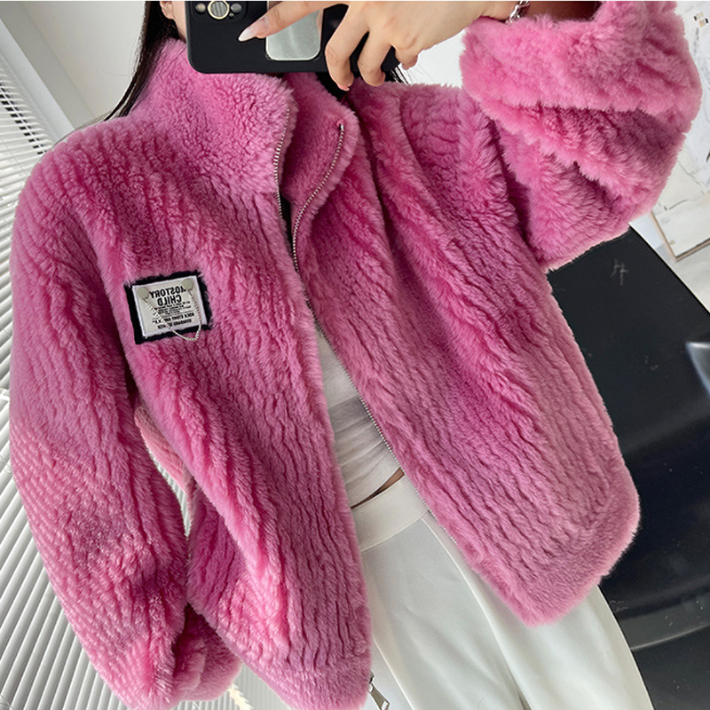 Autumn and Winter All Wool Stand Collar Hooded Fur Coat One Sheep Sheared Wool Lamb Jacket Women Double-faced Fur