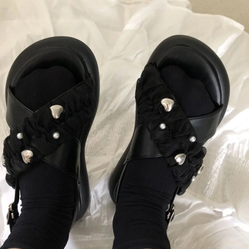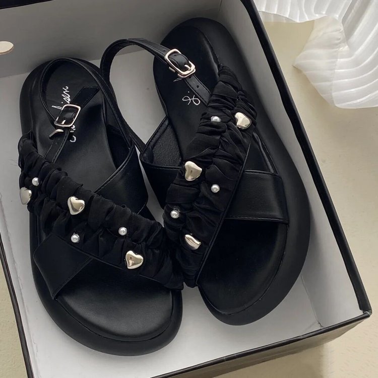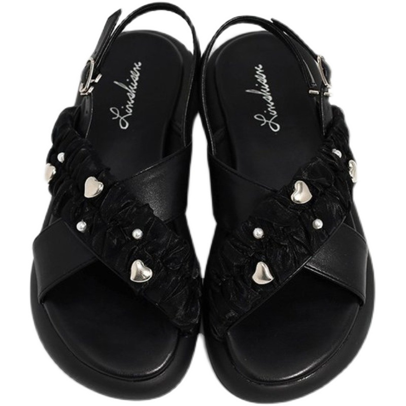 Fashion Silver Love Beach Shoes : Simple and versatile black sandals