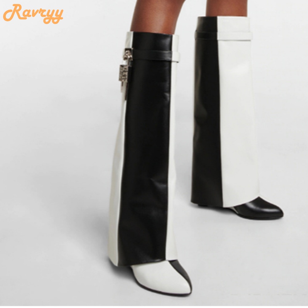 product : Black/white Splicing Cowhide Boots