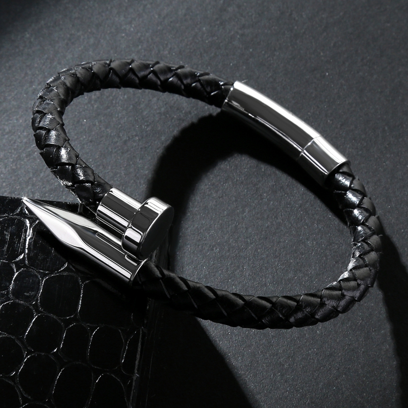 Braided Genuine Leather Nail Bracelet for Men Women Simple Leisure Jewelry Stainless Steel Buckle Hand Bangles Gift P604