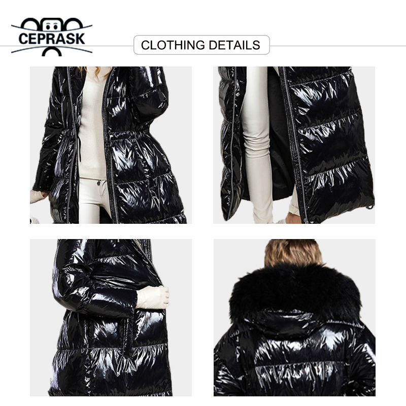 CEPRASK Winter Coat Women X-Long High Thick Cotton Parkas Hooded Outerwear Warm Faux Fur Woman Jacket