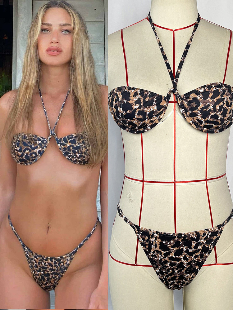 COOBBU Halter CUP Swimwear Sexy Bikinis Patchwork Swimsuit Women Bathing Suit Leopard Bikini Sets Solid Beachwear Biquini