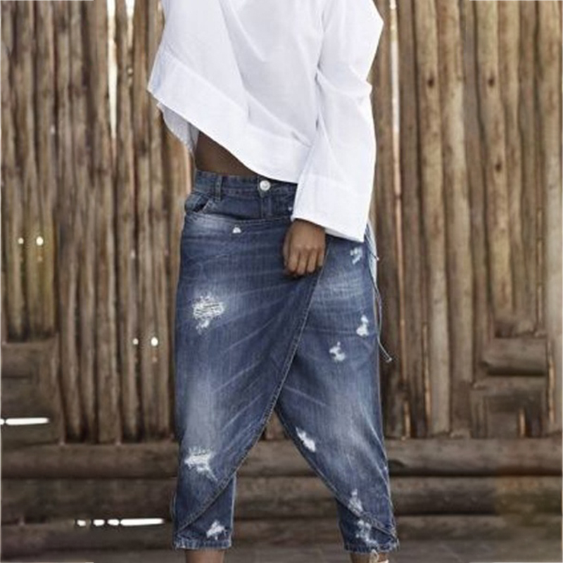 Capri pantsRipped Boyfriend Jeans for Women Low Waist Fake Two Layers Jeans Plus Size 5XL Pantalones