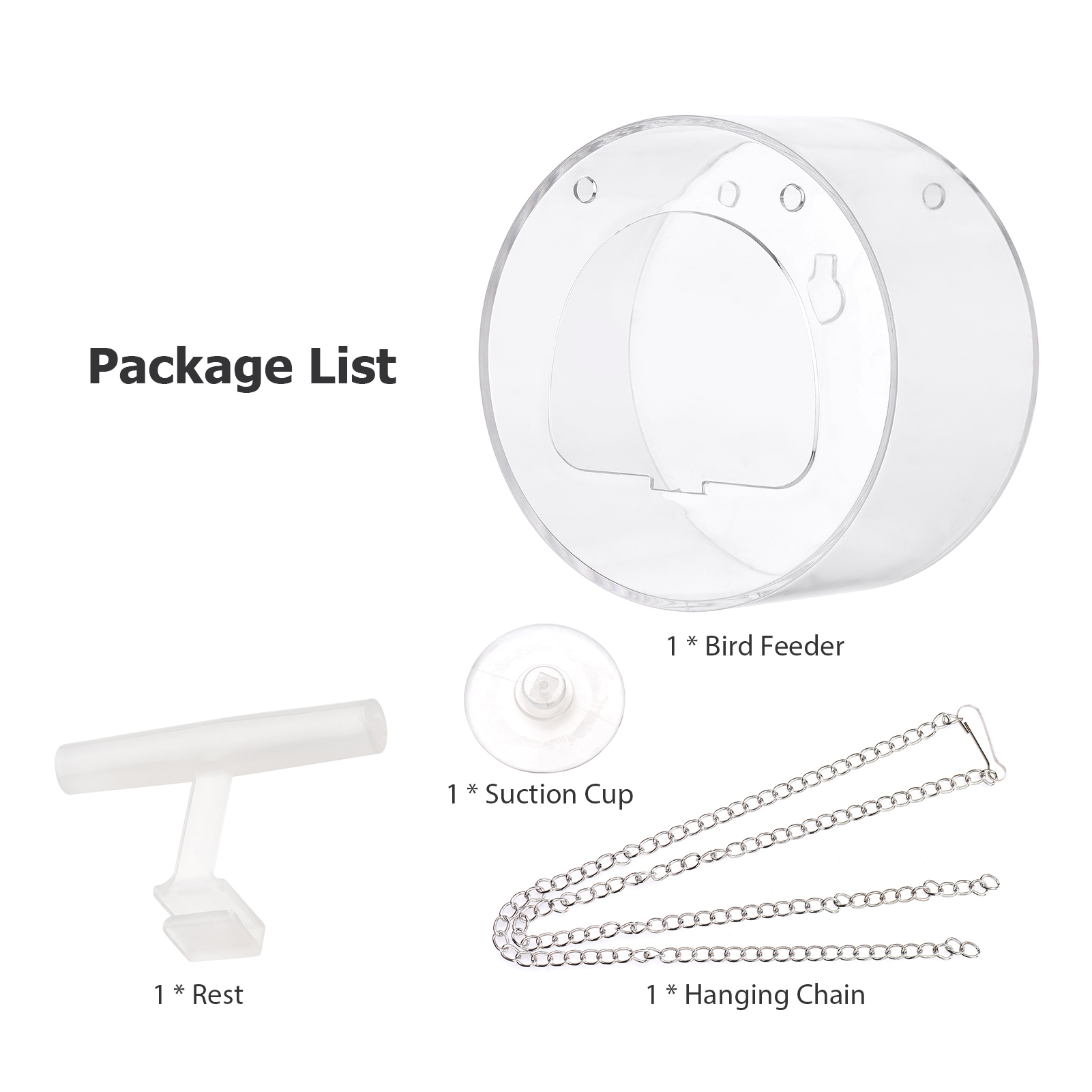 The bird feeder is equipped with a suction cup and a hanging chain, allowing different installation methods according to practical needs.