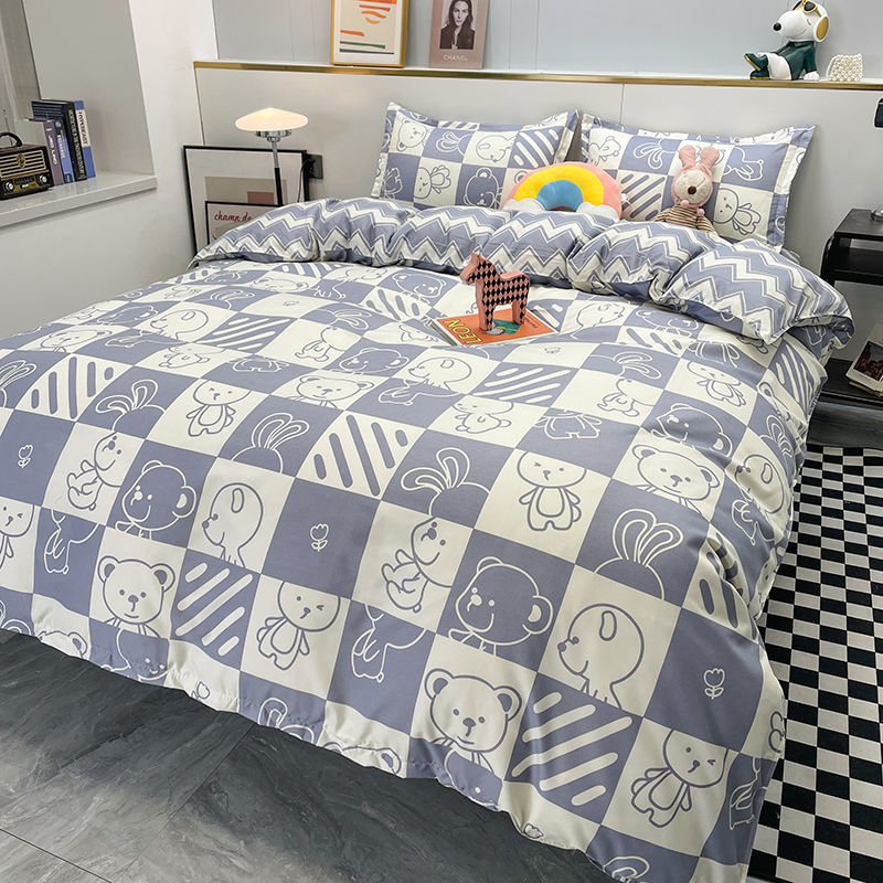 Cute Tiger Bedding Set with Checkerboard Girls Single Queen Flat Sheet Duvet Cover Pillowcase Bed Linens Kids Home Textile