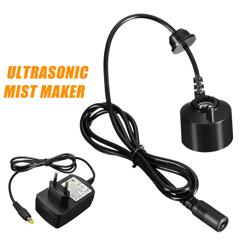 Ultrasonic atomizer using high frequency oscillation. The water spray device, the connecting piece and the circuit, high frequency oscillatory fog atomizing force will be produced under the. Containing air ion in thick fog can increase the air humidity and fresh air. This product uses the advanced large room, atomized mist is generated and the ideal of good decorative effect, in the rockery, fountain, potted landscape. How to use: 1.The best location: 1-5 cm of water. Depth enough to cover the atomizing head black font 1-5CM appropriate level sensor, the water is too deep will not fog!!!Be careful not to put too deep water level! 2.Find a container mounted on the clean water, pure water is not 3. Turn on the power, it can spray. Note: power is not splashed water Description: Package include: |