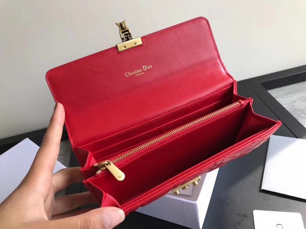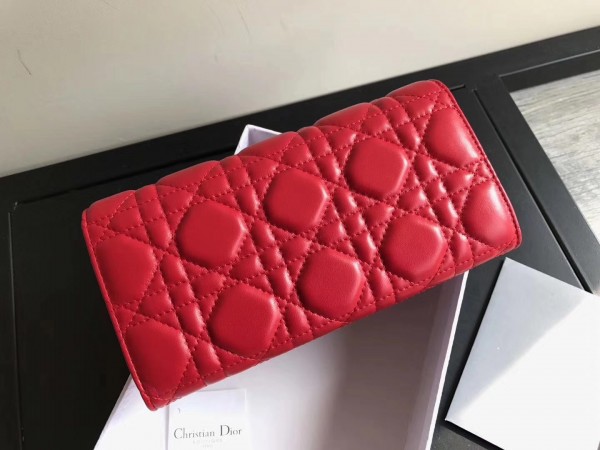 Dior DiorAddict Continental Wallet In Red Lambskin