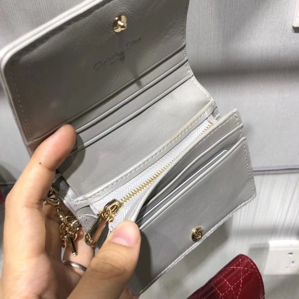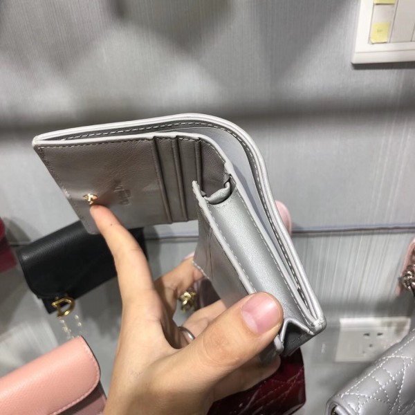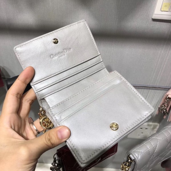 Dior Mini Lady Dior Wallet In Opal Grey Pearly Lambskin