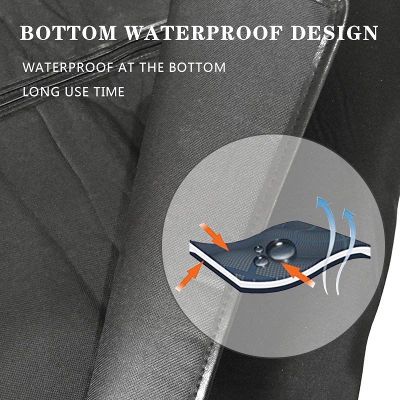 Waterproof Heavy Duty Material Made of High Quality Durable Waterproof Polyester for Durable Comfort. Includes built-in Velcro openings for seat belts and seat anchors to prevent seat cover from sliding.