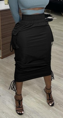 Drawstring Ruched High Waist Midi Skirts Womens Pocket Summer Camouflage Newspaper Bodycon Pencil Skirt Female Jupe
