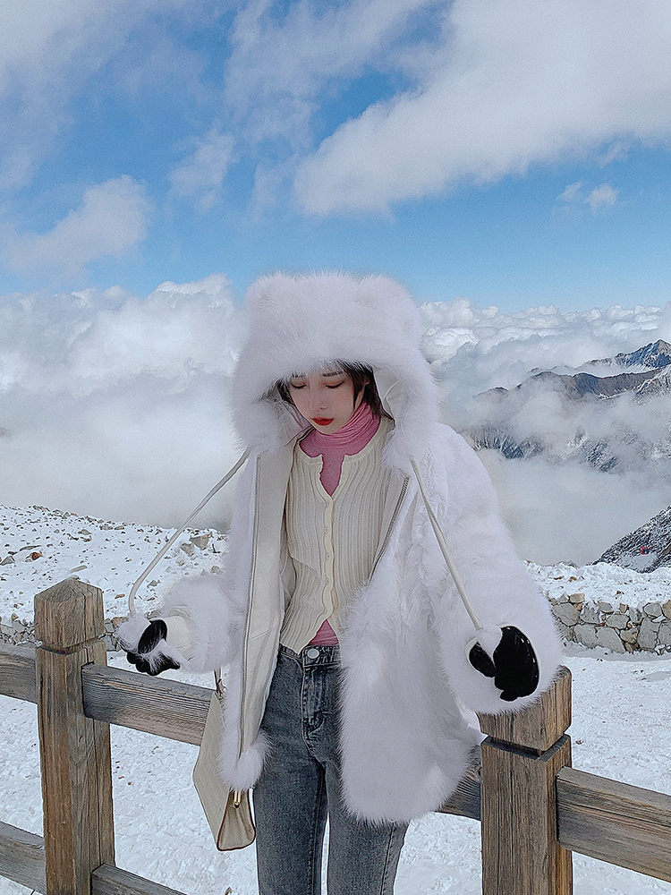 "Drunken Rabbit" imported fox fur splicing otter rabbit hood fur coat young winter girl
