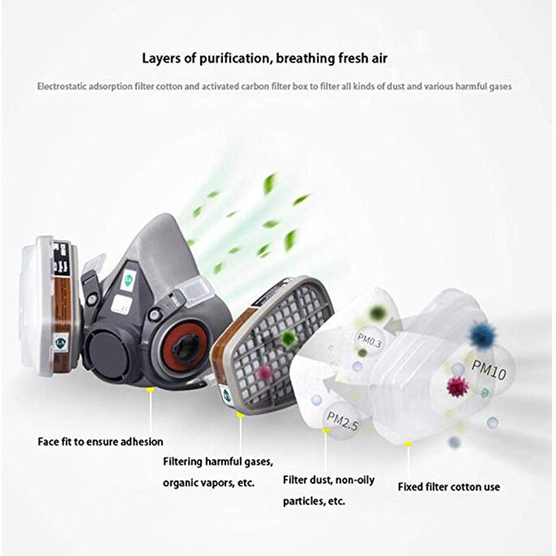Introduce and Feature Provides a snug fit to face any type and size. Substrate does not cause allergies, soft and tight to the face of the strip obturation. Feature: 1 The fastening system of two elastic rubber straps on the cotton and the headband is regulated at four points. 2 6001CN activated carbon filter cartridge for filtering organic gases and vapors such as benzene and homologues, gasoline, acetone, carbon disulfide, helium, etc. 3 The size adjust by two lines as your size.