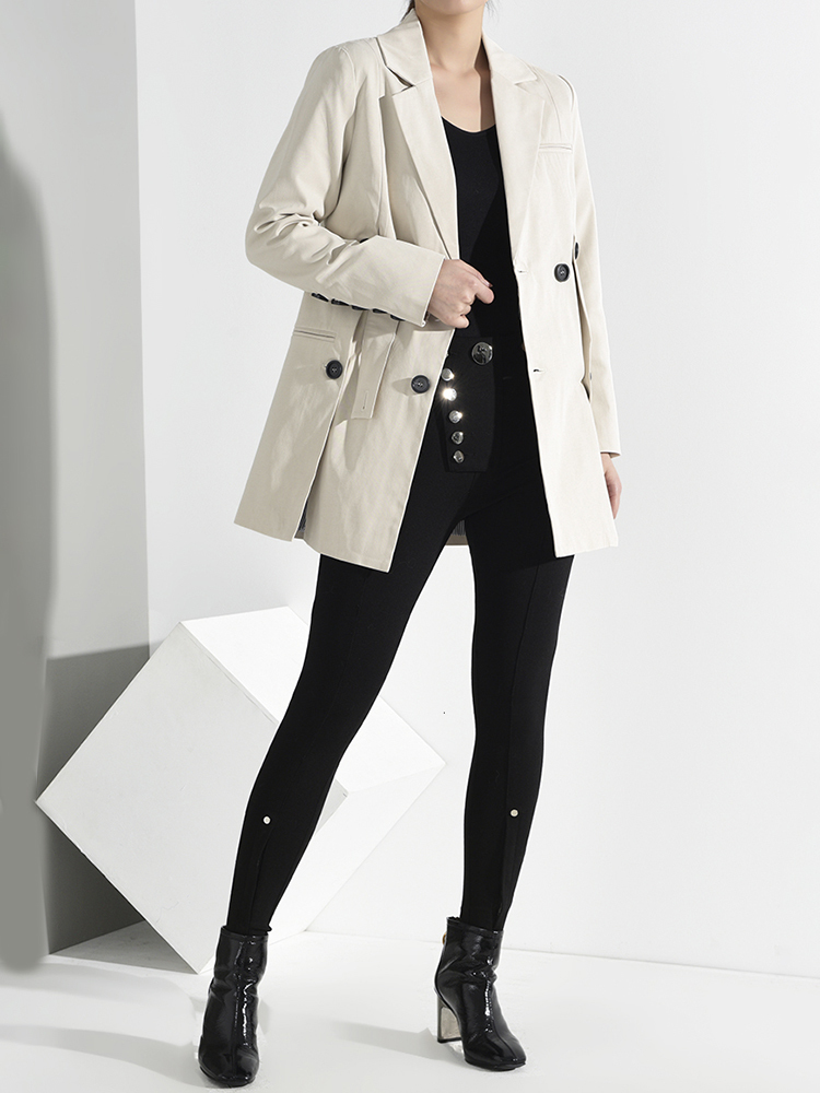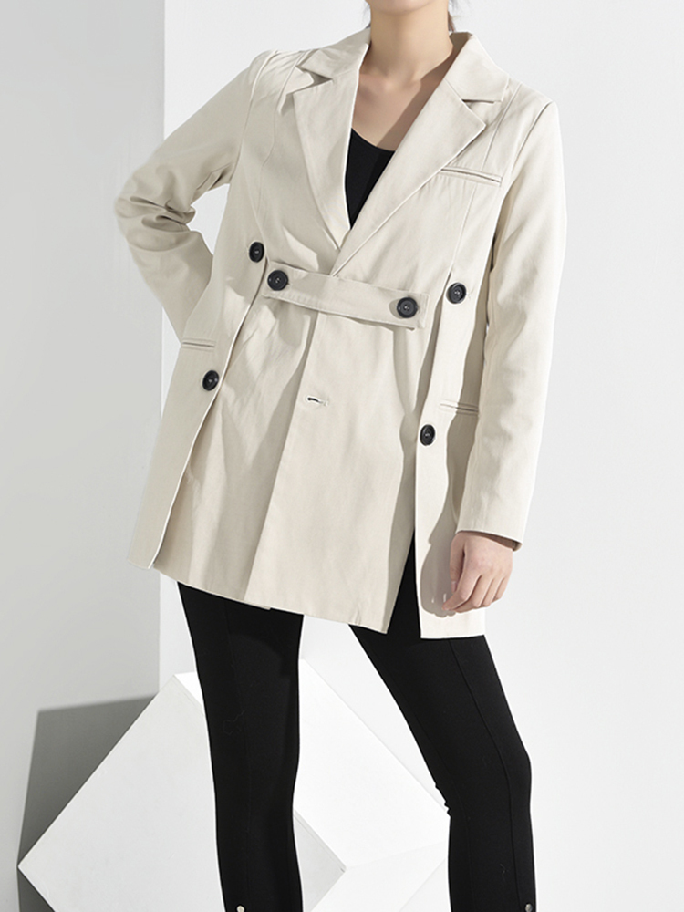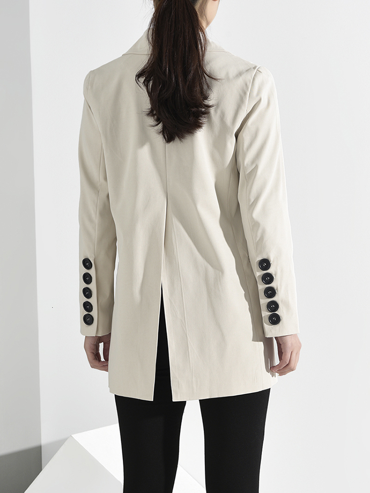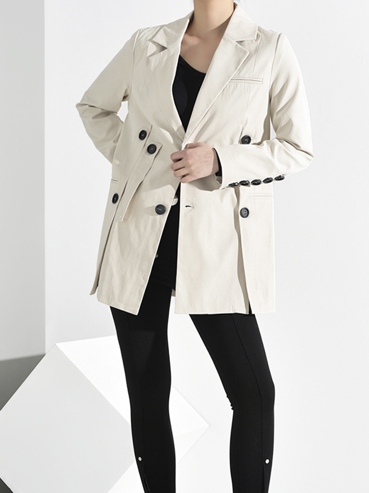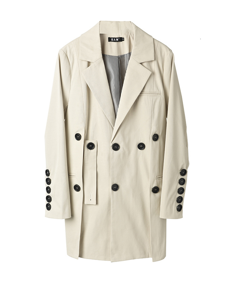 [EAM] Loose Fit Button Split Temperament Jacket Lapel Long Sleeve Women Coat Tide Spring Autumn JQ29000