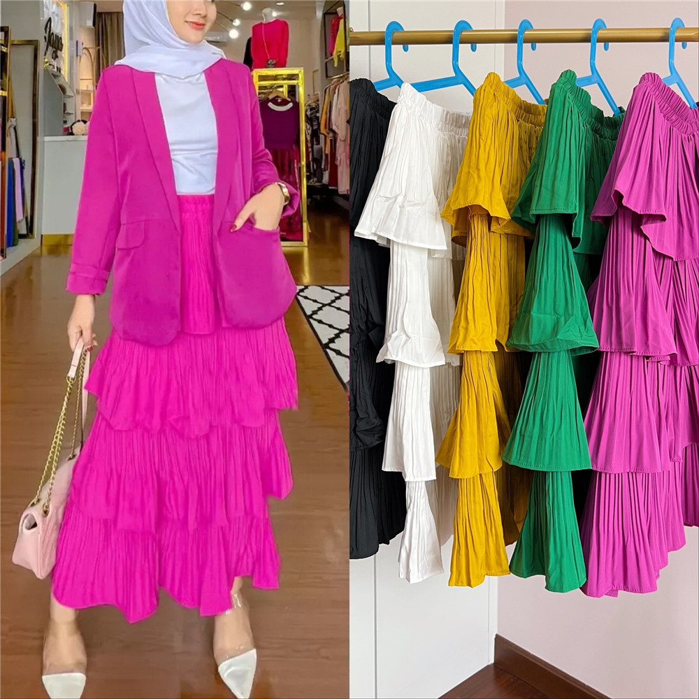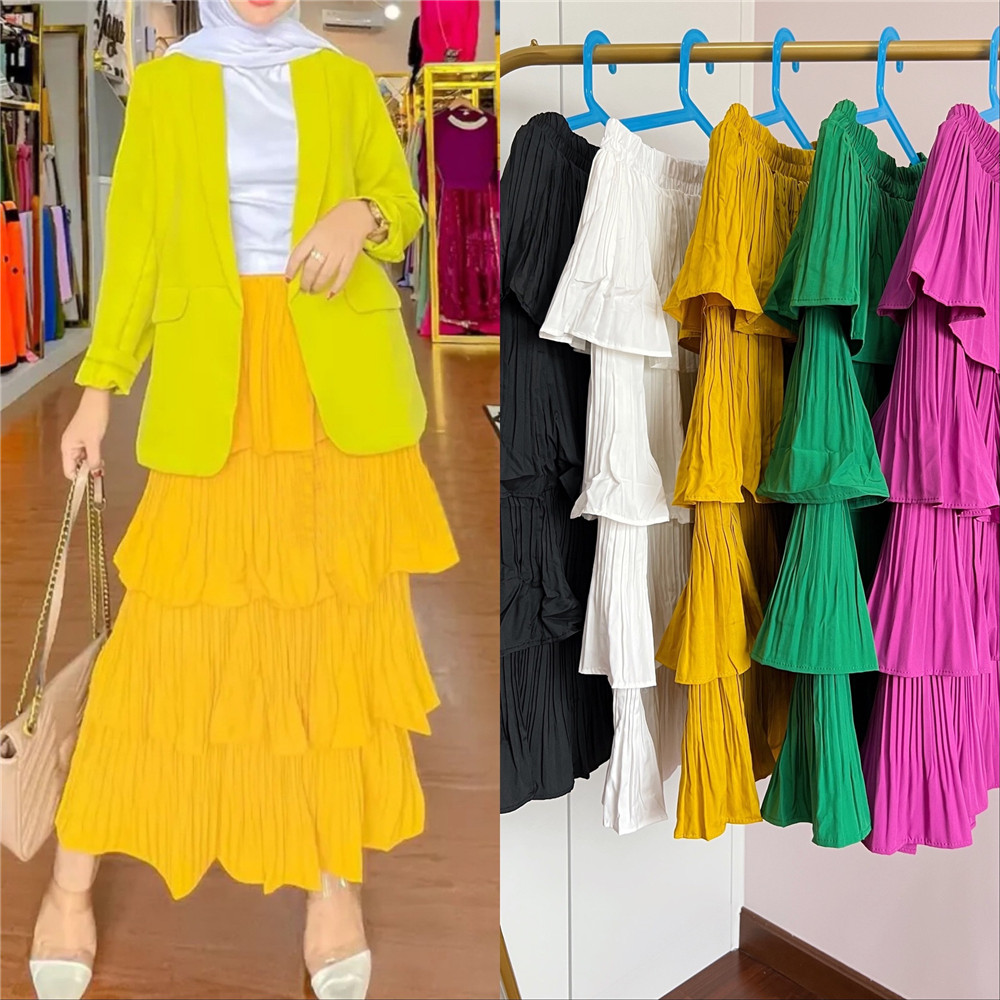 Elegant Multi Layer Pleated Long Skirts Women Casual Party High Waist Cake Dress Full Length Skirt For Muslim Islamic Ladies