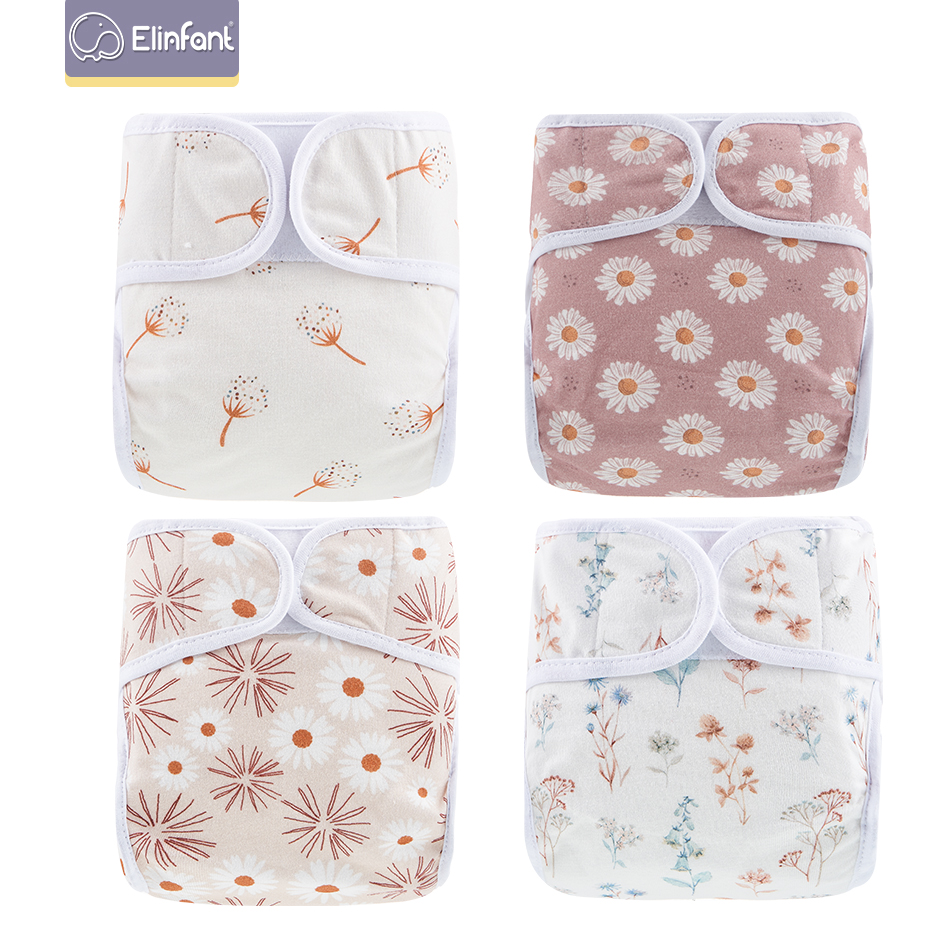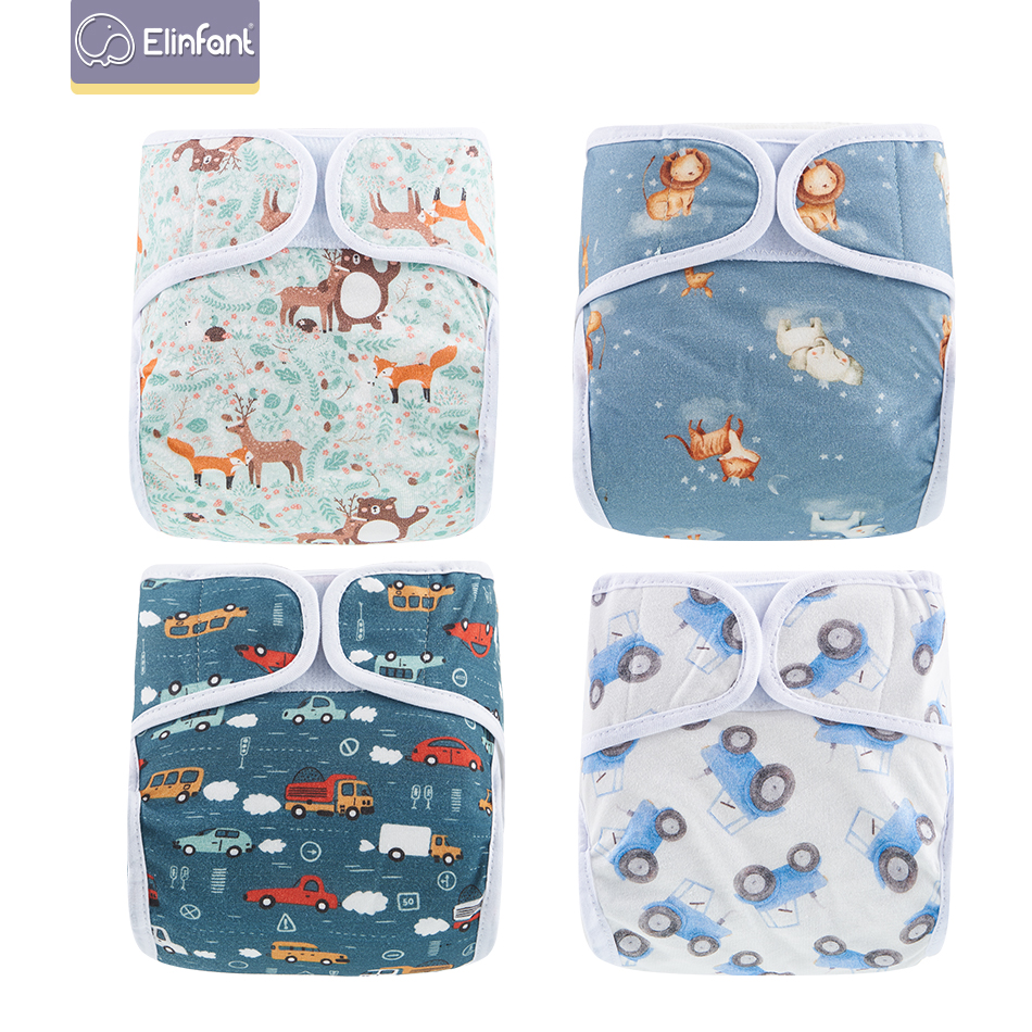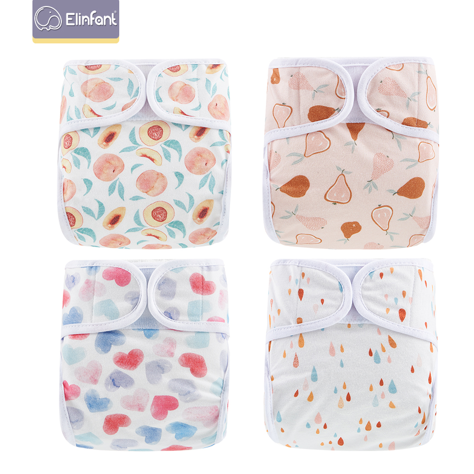 Elinfant 4PCS magic tape waterproof cotton cloth diaper fashion print for 5-30 pounds washable reusable baby cloth diaper