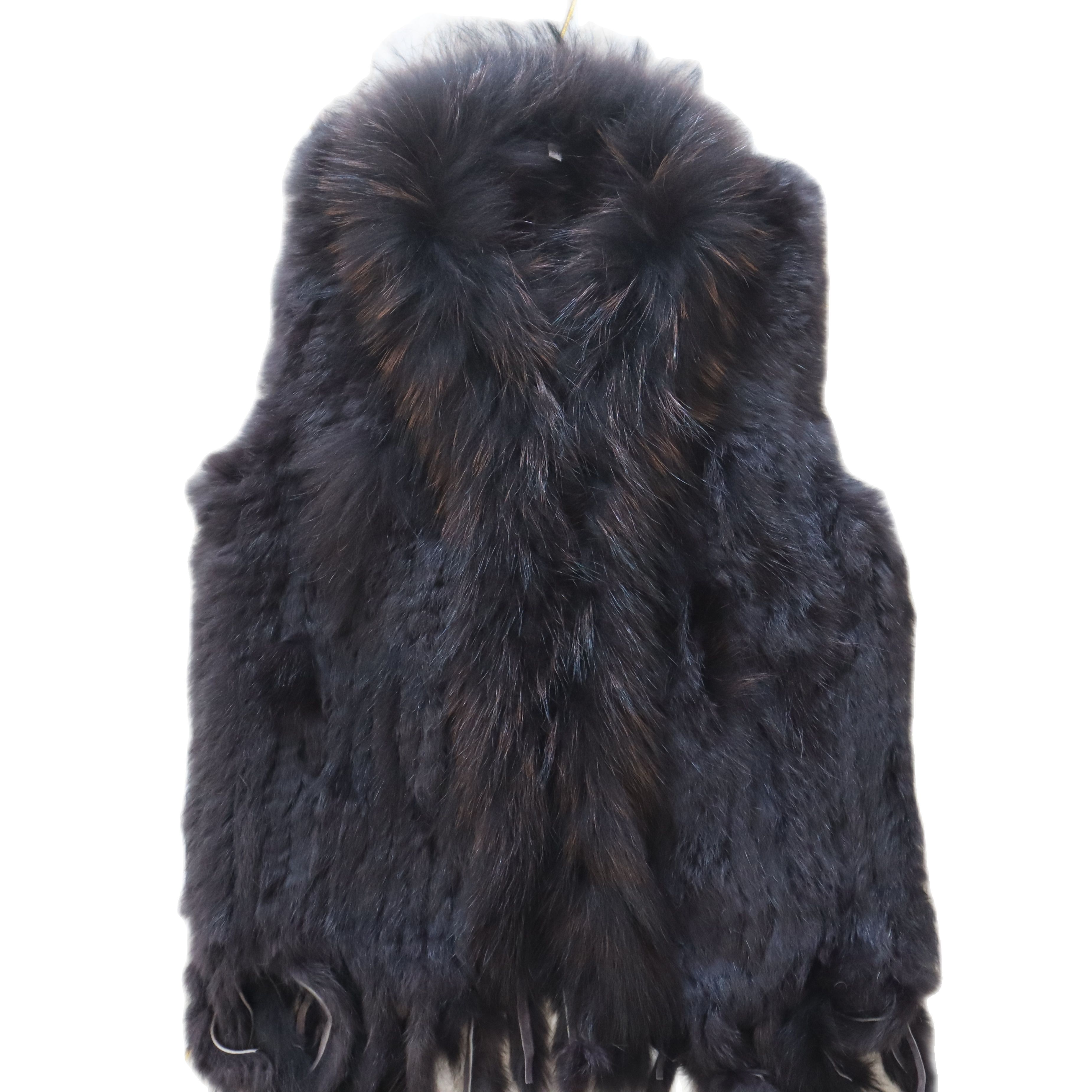 Factory Customized Real Rabbit Fur Tassel Vest High-end Women Knitted Sleeveless Vests Natural Raccoon Fur Jacket