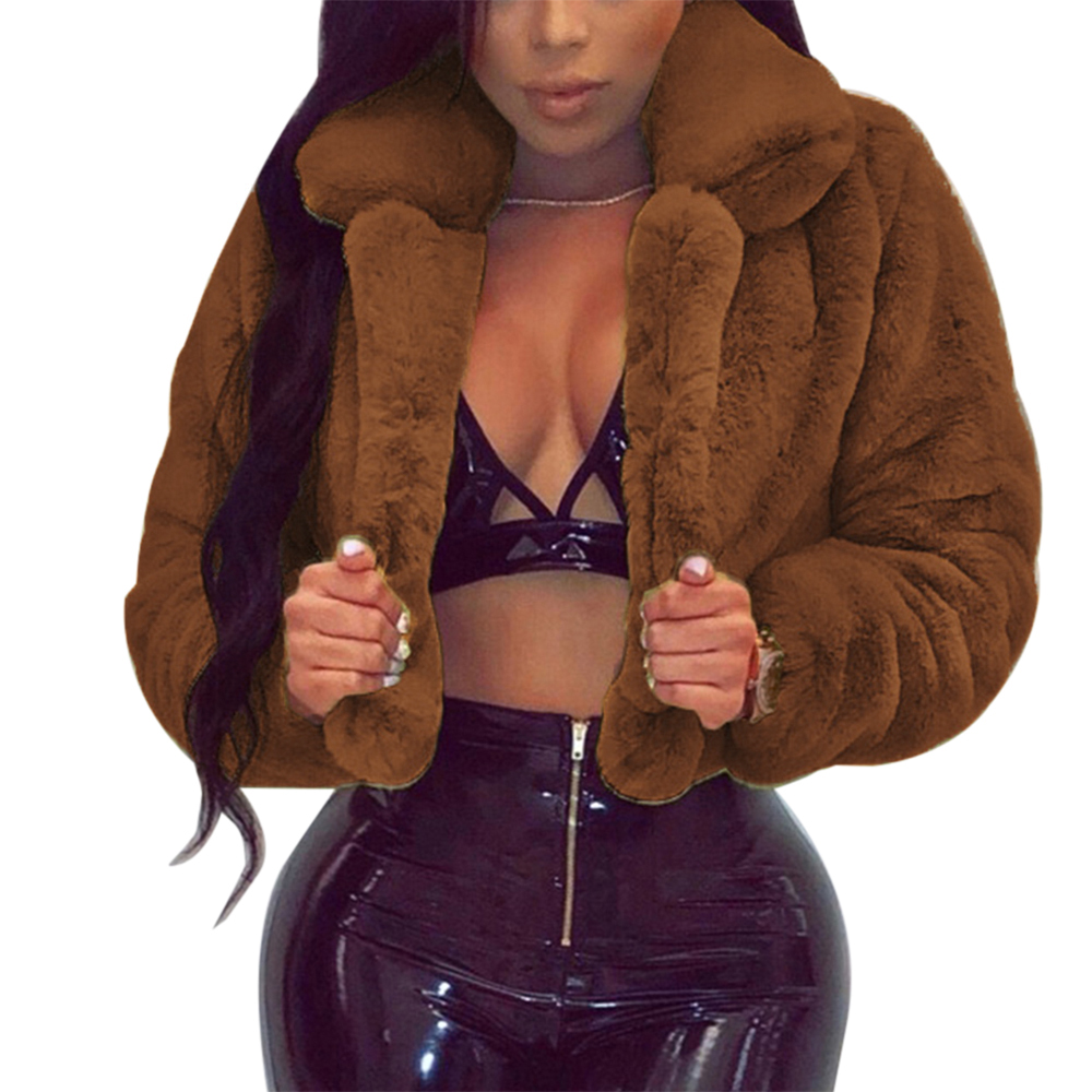Faux Fur Coats Women Warm Fluffy Cropped Jackets Furry Winter Jackets Women Down Collar Open Front Short Overcoats