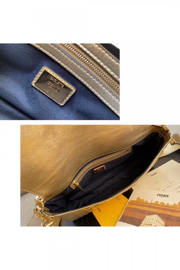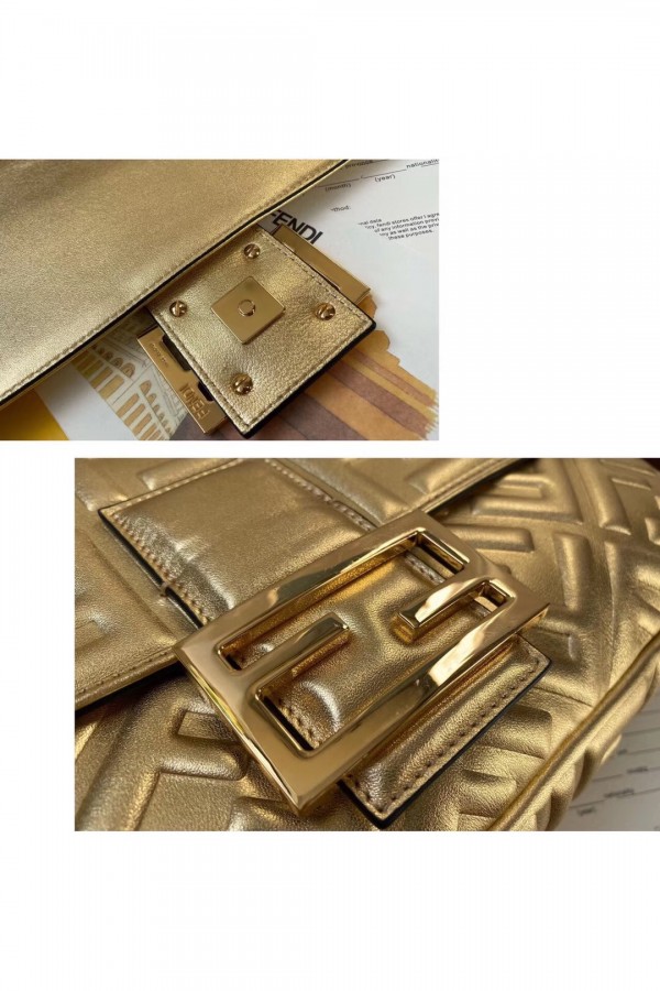 Fendi Baguette Large Bag In Gold Lambskin With FF Motif