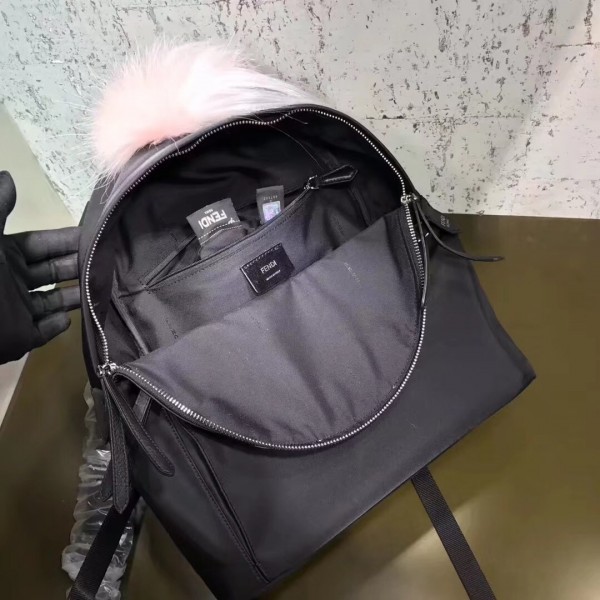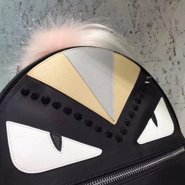 Fendi Black Bag Bugs Eyes Fox Fur Studs Backpack