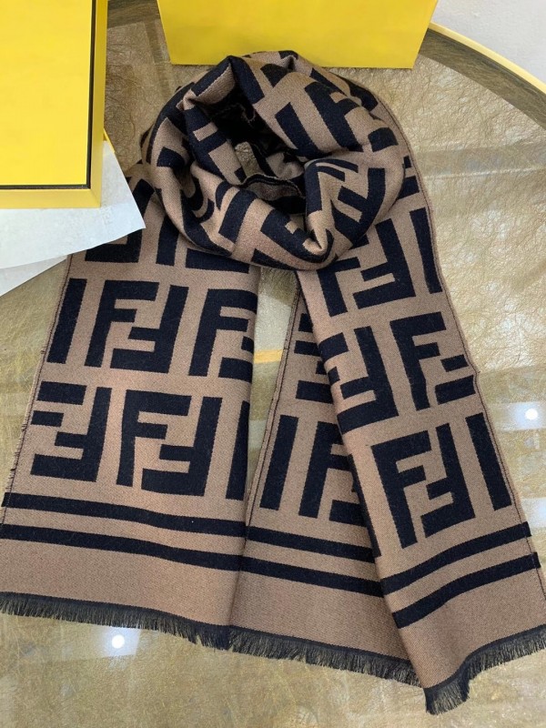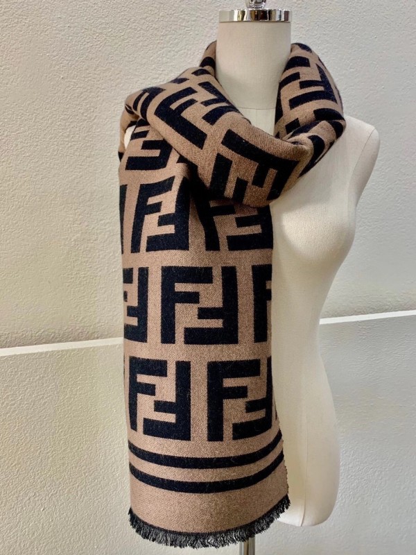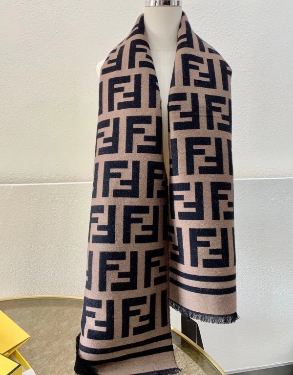 The generously proportioned scarf exudes timeless sophistication. Crafted from a featherlight silk and wool blend, the style features a woven rendition of the House’s FF motif pattern. Trimmed with a striped border in matching tones make this piece easy to combine with chic ensembles.