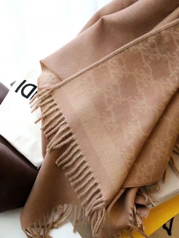With its generous dimensions and cozy cashmere and wool, the Karl Poncho makes a perfect accessory for wintry days. House devotees will appreciate the new, one side is customized with an FF Karligraphy motif and the other is in a plain color. Long tonal fringe details complete its timeless and romantic design.