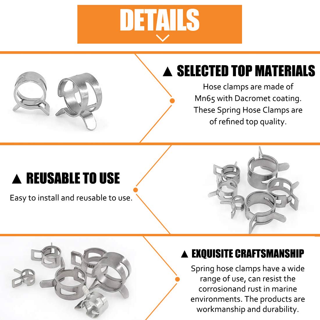 100pcs Hose Clamp High Quality Zinc Plated Spring Clips Gear Hose Fuel Line Clamp for Boats ATVs Motorcycles with Storage Box