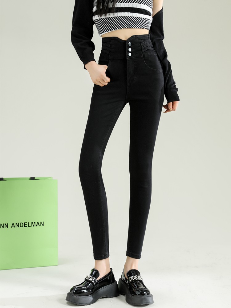 GUUZYUVIZ High Waist Elastic Skinny Jeans Women Autumn Winter Casual Slim Vintage Denim Pencil Pants