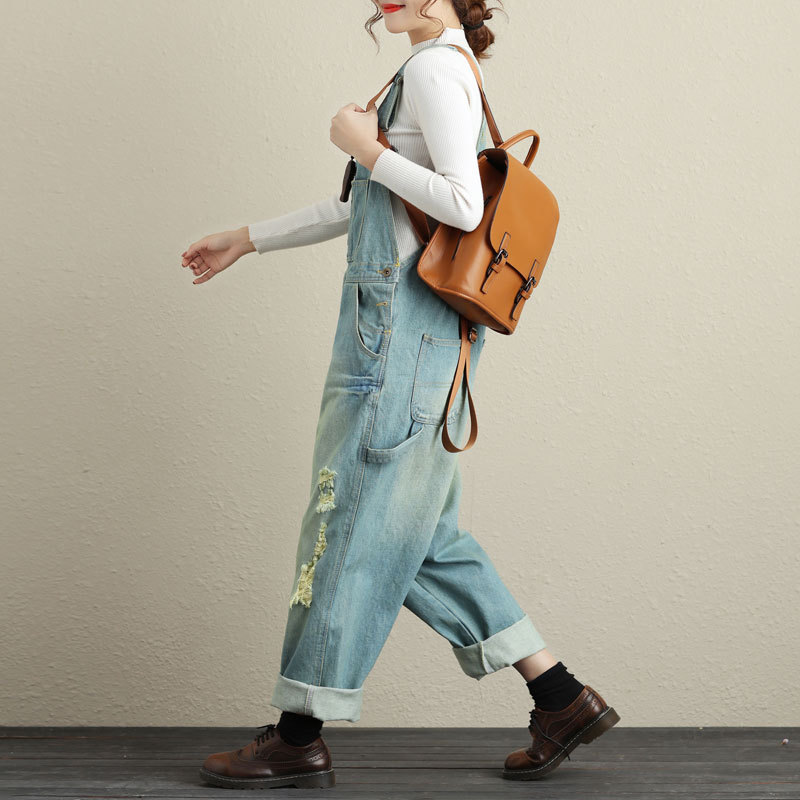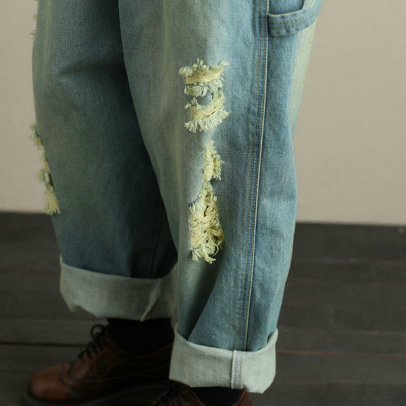 Bib Denim Overalls Fashion : Ripped Hollow Out