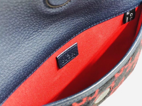 The belt bag is presented in blue and red GG wool—a contemporary interpretation of the original 1930s design, the distinctive fabric is displayed throughout the Cruise 2020 ready-to-wear and accessories. Trimmed with textured blue leather, the rectangular shape has a magnetic flap closure and an adjustable Web strap.