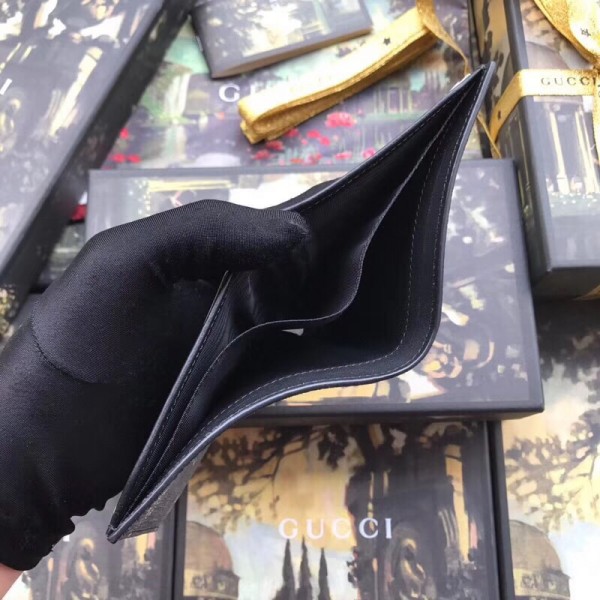 A wallet crafted from black and grey GG Supreme with a dynamic feline pattern. Wild flora and fauna continue to inspire the House as a leaping tiger motif animates the monogrammed canvas.