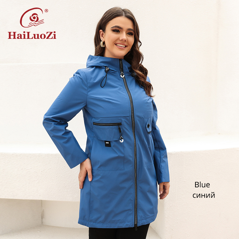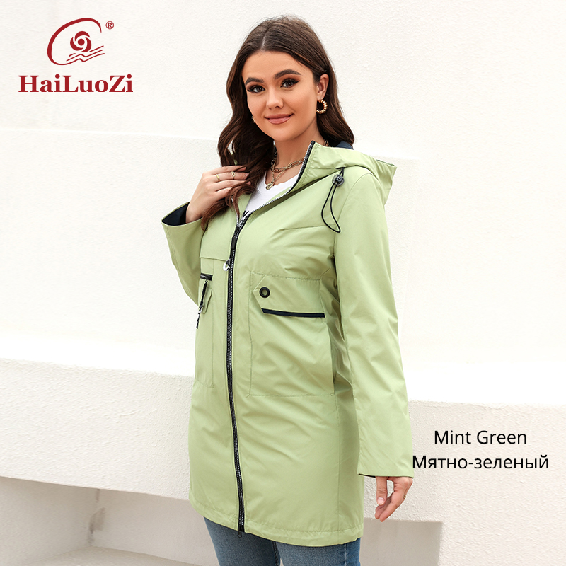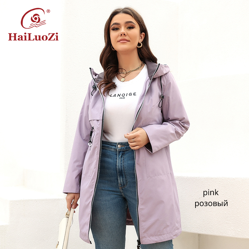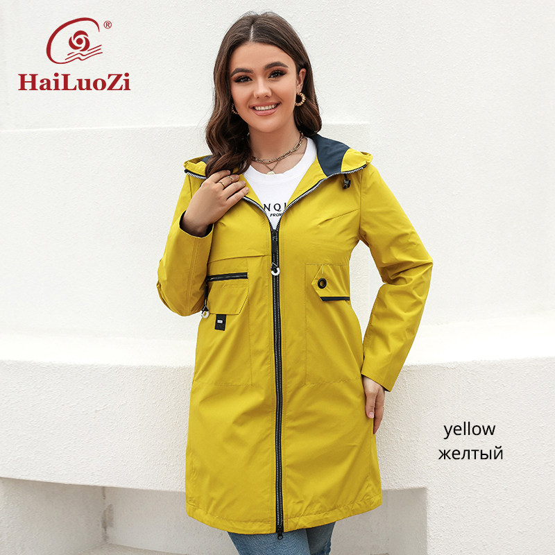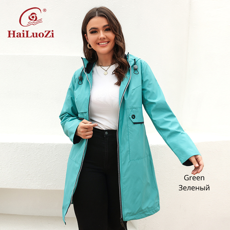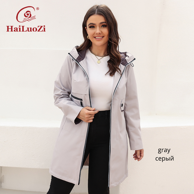 HaiLuoZi Women's Trench Coat Plus Size Jacket for Women spring Short Parka Hooded Casual Windbreaker Pockets Outwear 2202