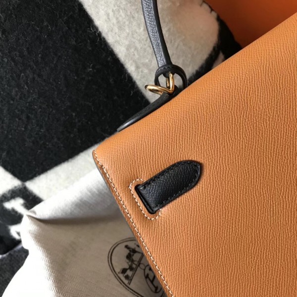 Hermes Bi-color Kelly 32cm Epsom Bag Gold/Black GHW