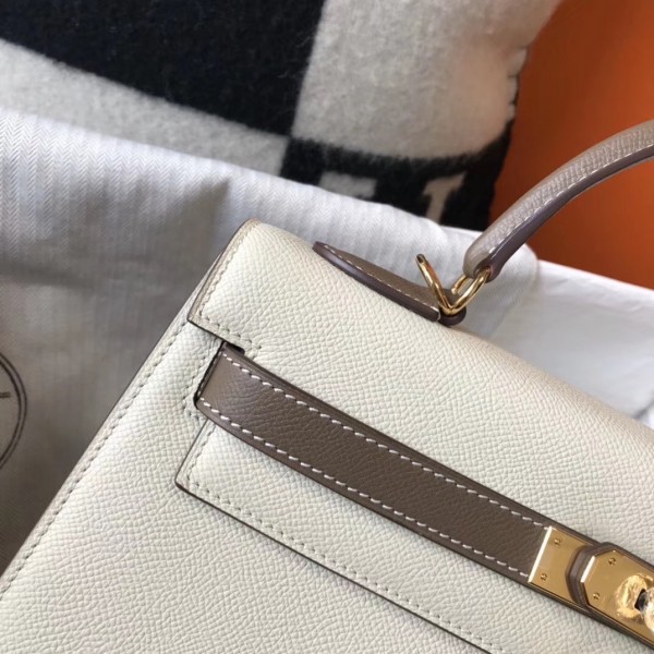Hermes Bi-color Kelly 32cm Epsom Bag White/Taupe GHW