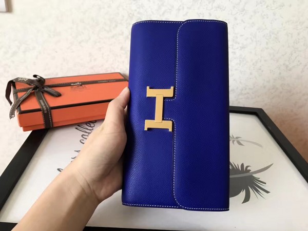 Hermes Blue Electric Epsom Constance Long Wallet
