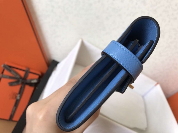 Hermes Kelly Classic Long Wallet In Blue Jean Epsom Leather