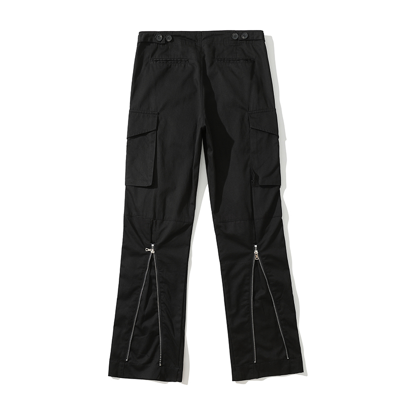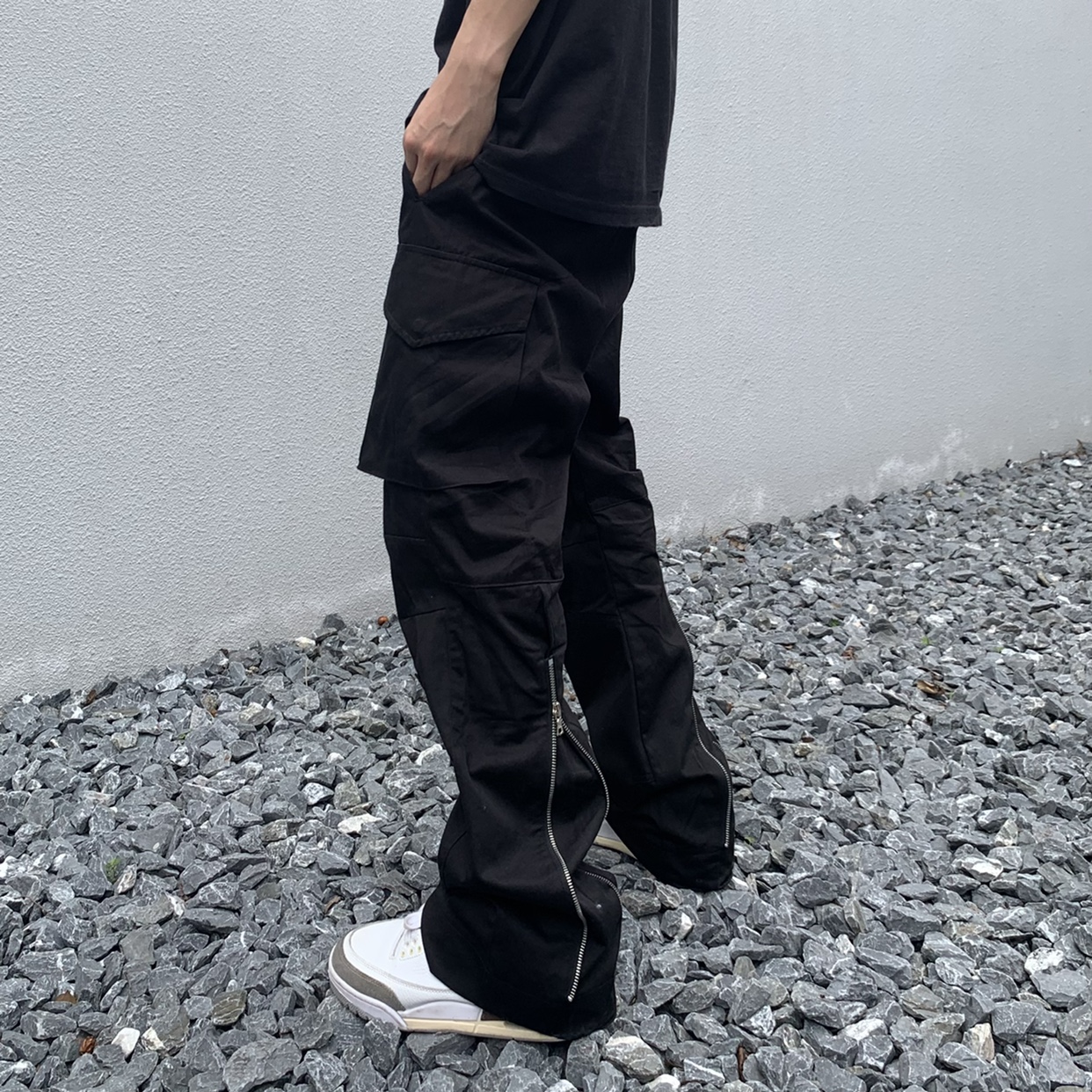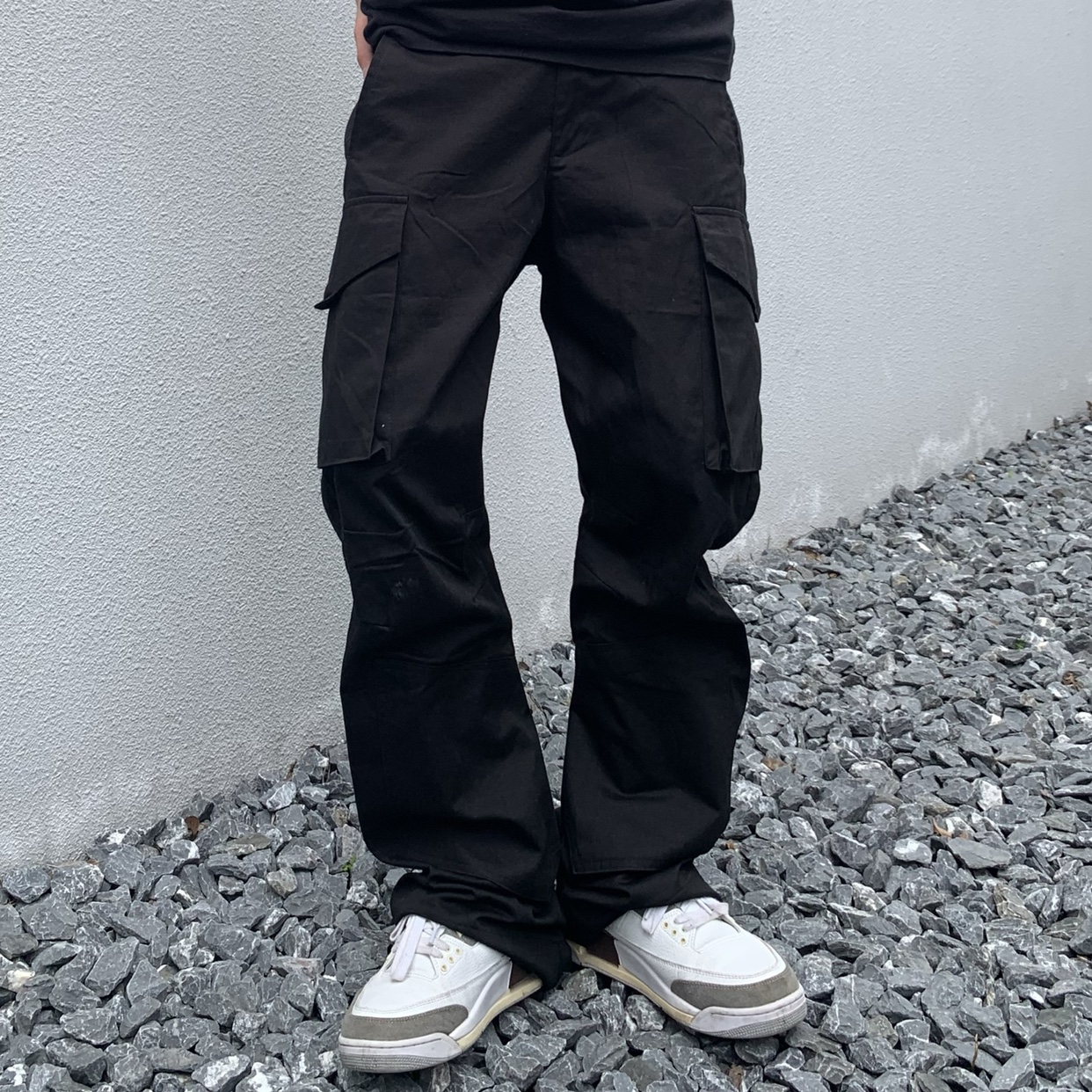 Hip-hop Retro Black Cargo Flared Pant Harajuku Streetwear Adjustable Joggers Pants Men Loose Casual Wide Leg Pants for Men Women