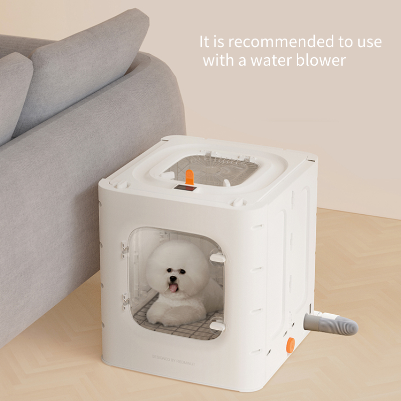This pet drying box has no air supply and heating functions, and needs to be used with a pet water blower, so that the pet water blower can provide heating and air supply. Therefore, the pet drying box cannot be used alone.2. Which pet water blowers can be used with?