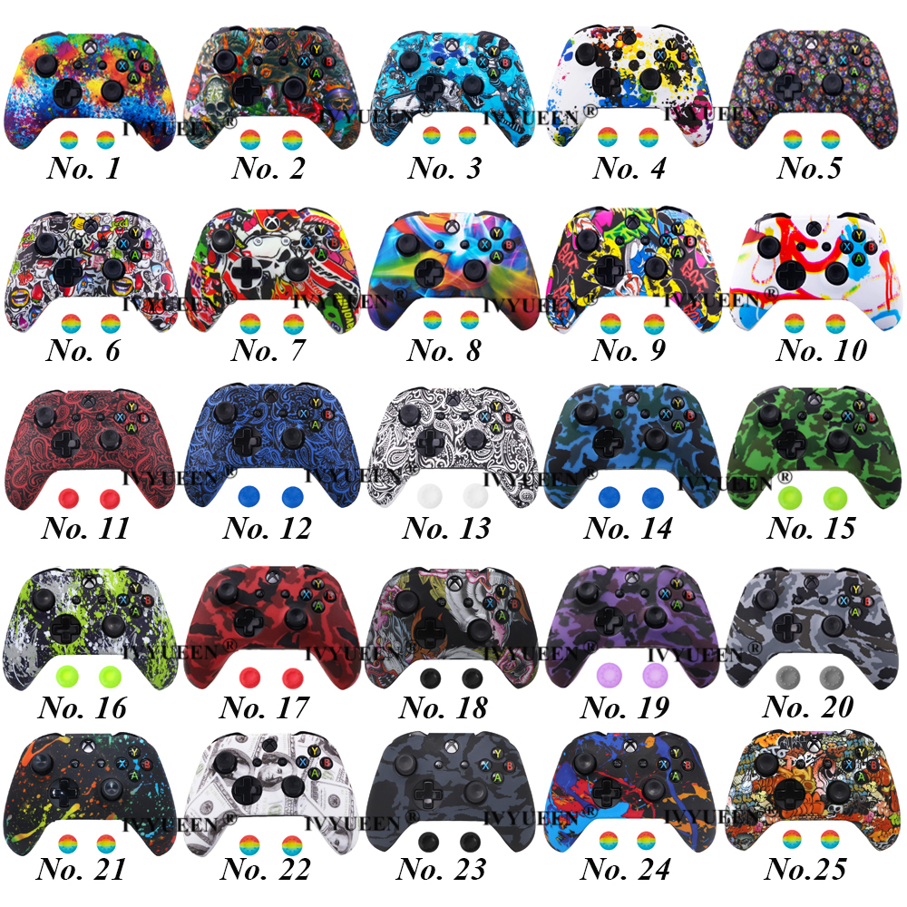 IVYUEEN Silicone Protective Skin Case for XBox One X S Controller Protector Water Transfer Printing Camouflage Cover Grips Caps